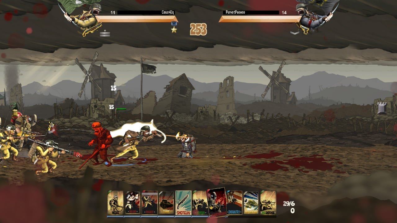 Строительства базы в этой игре нет. Юзер может отдавать приказы своим подчиненным и запрашивать подкрепление. В этом проекте есть элементы карточной игры и лутбоксы. Из них выпадают карты с войсками, умениями и предметами. Из них пользователь формирует свою колоду перед началом боя. Можно брать с собой танки, медиков, артиллеристов, огнестрельное оружие, удары с воздуха, турели и т. п. Под них доступно 10 ячеек. Они делятся на разные типы, в зависимости от своей степени редкости. Легендарный лут тоже встречается.